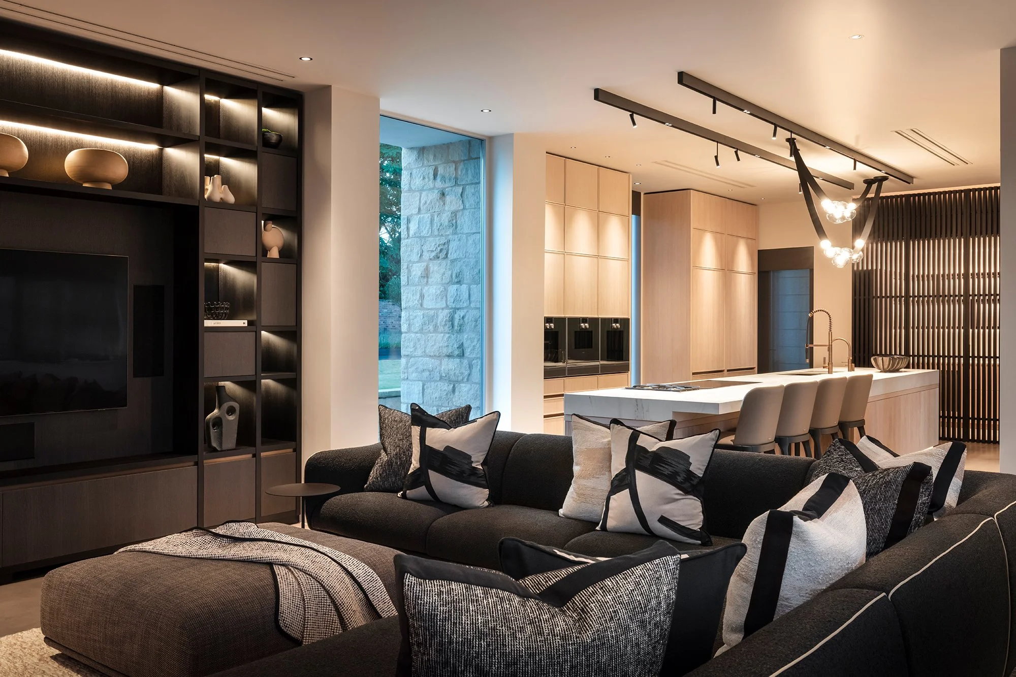 A growing trend is clients’ desire to have the ability to alter the atmosphere in different rooms, particularly in open-plan, multi-use spaces that are utilised throughout the day and evening. We employ technology that accomplishes this by creating layers of light that can be adjusted to suit various scenes and, by using tunable white LED’s, that adjust the colour temperature of the lights from neutral white to warm white, at different times of day. The result is a fresher feel during the day and a warm, cosy ambience in the evening.
